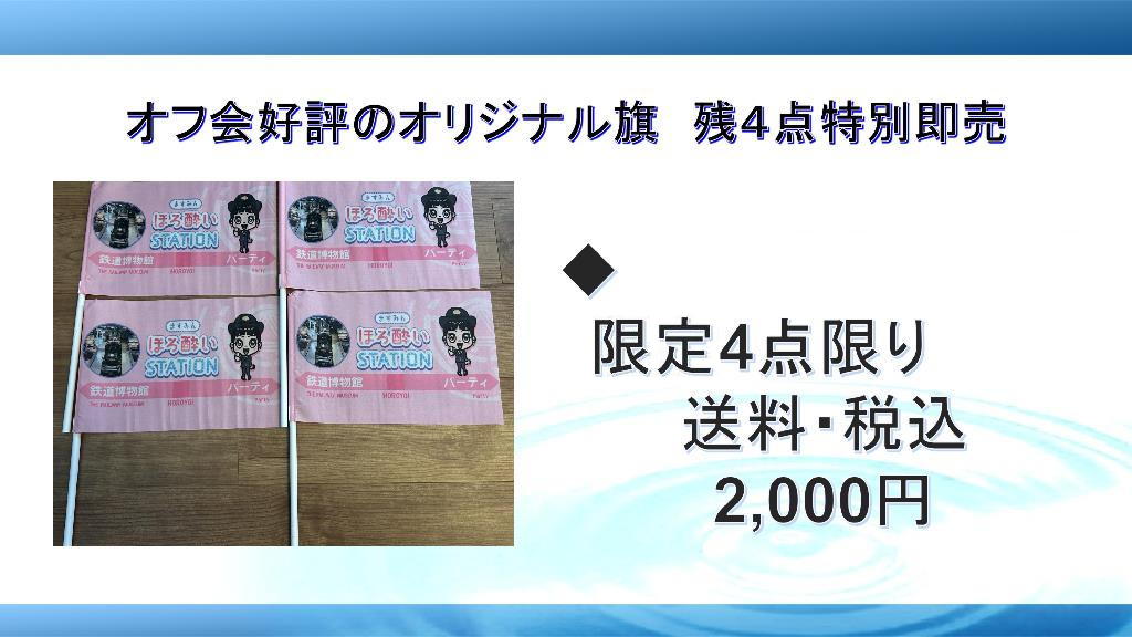先月11月14日(金)には年内最後のますみんほろ酔いSTATION(オンライン)第25回が一足先に、クリスマスムード満載で忘年会モードで開催されました。ご参加いただいた皆様ありがとうございました。こちらでも告知させていただきましたが、2025年9月14日(日)に大宮の鉄道博物館にて開催されました、「ますみんほろ酔いSTATION2025オフ会 IN鉄道の街大宮(おとなの遠足)」で記念写真の横断幕と同デザインの当日参加者限定の記念品として制作した特別限定グッズの「小旗」は参加者にも大変好評で、在庫が現在4点残っております。こちらを4点限定先着順にて一般特別限定WEB販売をさせていただきます。ぜひお買い求めいただければ幸いです。
