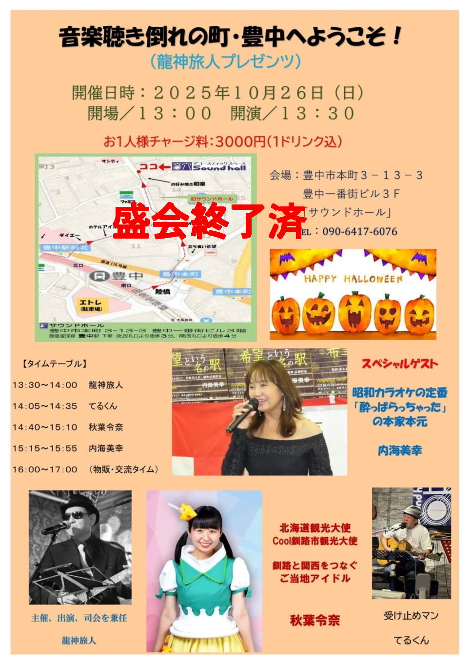 大変おまたせいたしました。テレビ猪名川MUSIC Liveシリーズ「音楽聴き倒れの町・豊中へようこそ!IN 豊中サウンドホール(2025年10月26日収録済)」をいよいよ2026年1月17日(土)21時~よりプレミア公開配信(全編無料)をスタートいたします。ぜひご覧ください。